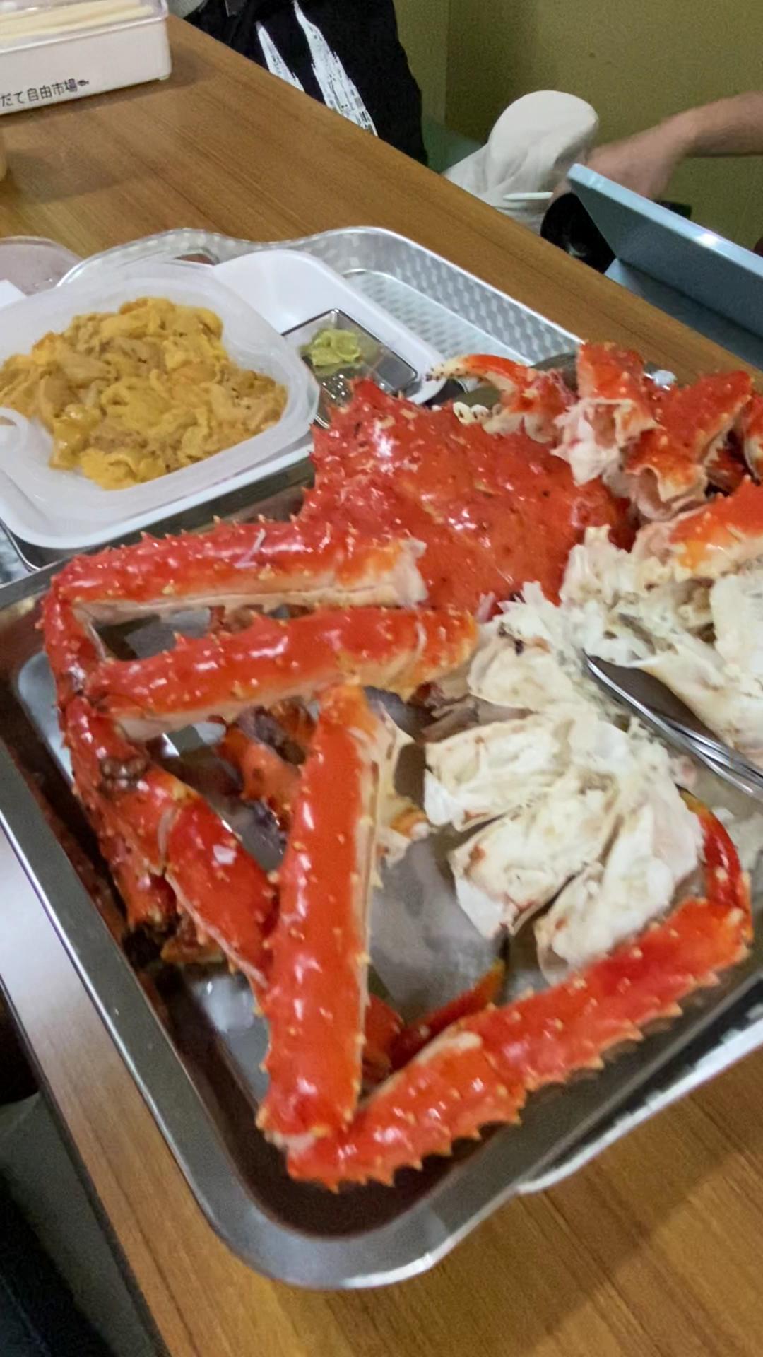 Seating is available, though limited. The crab store steamed and prepared the crab for us, we bought a small live king crab at 10,000 yen per kilo, although we found it at 9,000 yen per kilo at the other market (price during early...
