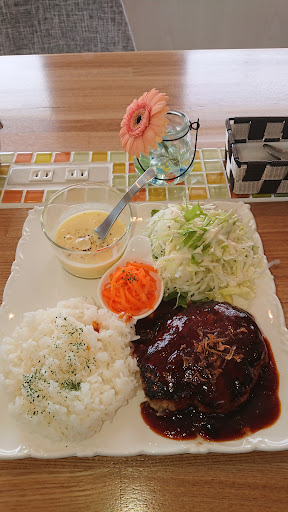 Read more可愛くて女性が好きそうな雰囲気のお店。 山の手ダイソーから坂を上がってきた道路には入り口が面していないので見つけにくい。 隣に目立つ惣菜屋さんがあり、むかえは太っ腹という居酒屋さんがあるのでそれらを目印に行くとよいと思う。 ランチの種類はハンバーグ、パスタ、カレー、チキン等色々選べる。種類が豊富なので友達なんかと食べに行きやすい。 私はハンバーグを食べたのですが、ソースは少し甘め。豚肉のハンバーグで家庭の味っぽい。子供が喜びそうな味。ランチのお値段はドリンクつき(メニューによってはドリンクをつ...