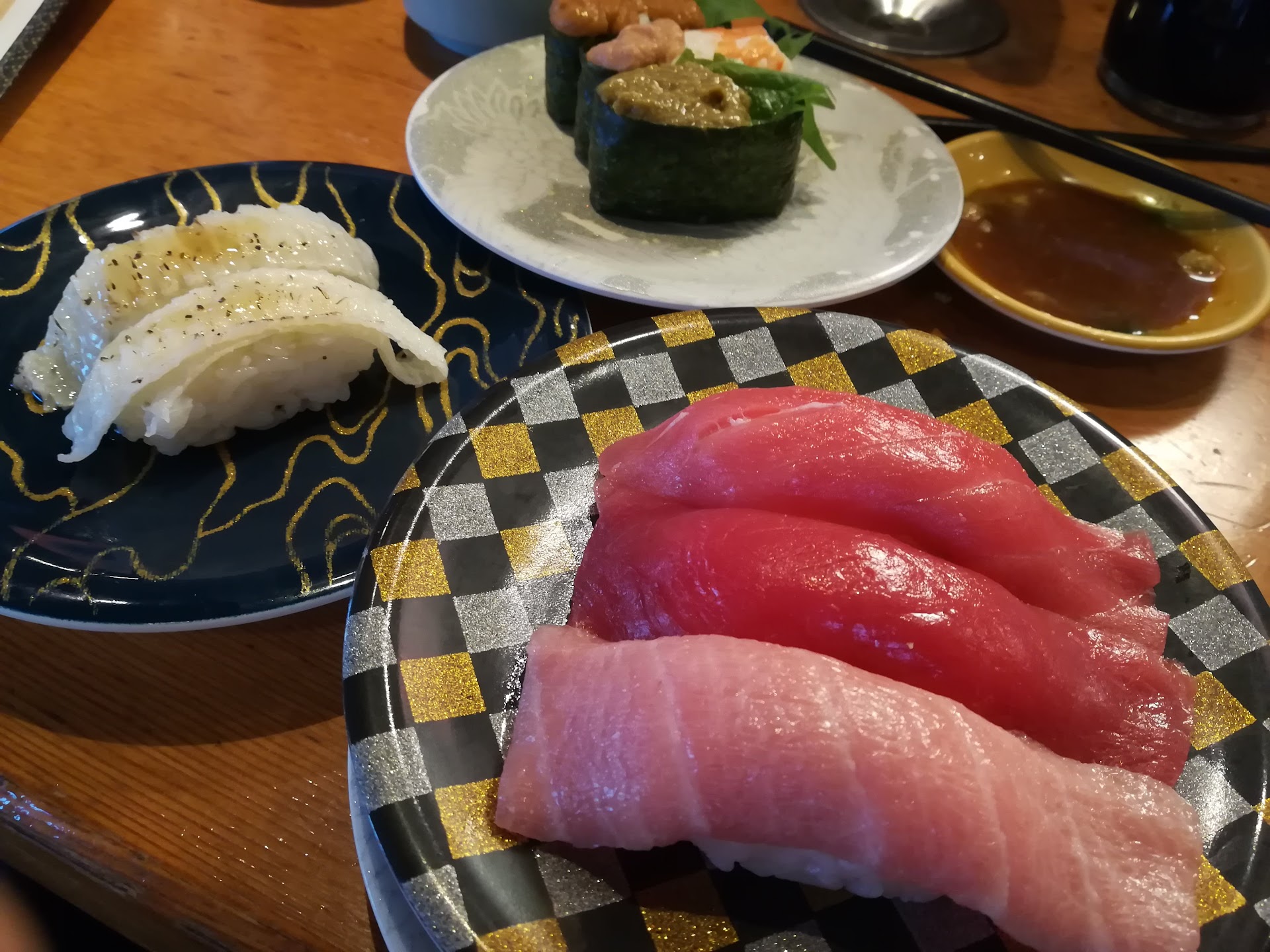 Today me and my family went together for a late lunch at around 2pm, and we understand we are a big group and that most places can’t accommodate 10 people in the same table. So we decided to get two tables, one with 6 people and another with 4 people but both for the booth seating. We waited a good 40 mins for our first table but our second table took 1h30 to be seated meanwhile we were the only ones waiting. After our first table sat down, we saw another group of 3 people that came away after us be seated on the booth. The staff did not know English and it was hard to communicate our frustration… It looked like they skipped locals ahead of us for being foreigners. Good sushi but bad experiences. On another note, sushi came pretty fast as it was ordered on the iPad. At the time we came we had the last 3 pieces of fatty tuna and our second table didn’t get to enjoy any, as well as of some other items that were sold out. We had the crab butter which ended up being extremely fishy and strong tasting (wouldn’t recommend). All of the fried items we had were delicious but it takes a couple of minutes so I would order first fried items. All other sushi pieces we had (besides the crab butter) were good especially the fatty tuna, and...