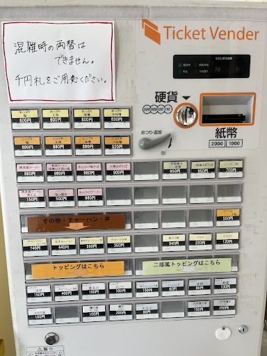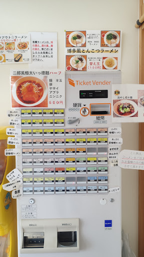 Read more函館ながら二郎系ラーメンに力を入れているラーメン店。いきなり二郎系を頼んで、食べられなかたらどうしよう?等の思いからなかなか行けずにいたところ、なんと!「ハーフ二郎」なるメニューがある事を発見し、これなら!と思い訪問となりました。 ただしこの店、私の苦手分野である券売機制度なんですよね。しかも尋常じゃないメニューの多さに頭が真っ白に…。一応他の方の書き込みにあった券売機画像で、ハーフ二郎のボタンの位置は覚えていきましたが、実際にあの券売機を目の前にするとぷちパニックになりながらも無事に券を購入。何を食べようかな?なんて迷ってるところに後ろからお客さん来たらと考えるとちょっとゾッとしますね。スペースもないですし。 やっと店内に入ると、ワタシ的には珍しく先客がチラホラ。 感染予防対策もシッカリした印象ですし、店内も清潔感があります。 食券をお店の方に渡し、到着を待ちます。隣の方は、チャーハンとぎょうざを食べられてました。チャーハンもなかなか美味しそうなイメージでした。 いよいよ私のハーフ二郎の登場です。決して少ない訳ではないですが、二郎系ラーメンとしては小振りなんでしょうね。まずスープを一口、お?そんなにしょっからくない、という印象。以前別の店で食べた二郎系ラーメンはとにかく醤油のしょっからラーメンでした。程よい味の濃さとパンチのあるニンニク。1個でもボリュームのあるチャーシューもいい感じ。背脂を感じながら野菜も美味しく、結局スープまで全部飲み干せる位に美味しいラーメンでした。 次回はフルサイズ二郎系ラーメンにしようか、他にも色々なメニ...