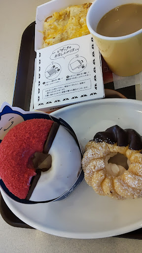 Read more店内食事に月一行ってるけど レジ待ちが大量に買う客とコーヒーと少しの食事も同じだから混んでると中々店内で食事出来ない ポケモン関係やってると尚更レジまで辿り着かない あと午前中と比べて午後から激混みになるから 買うまで行列が凄い 店内での食事場合は自分が忙しく時にここで食べる事はおすすめしない 先に書いた通りレジが持ち帰りと一緒だから注文待ちしてる時間が長すぎて時間なくなるし 冬は店内凄く寒いんだよここ のんびりしてる客を追い出したいのかわからないけど凄く寒い Wi-FiはauだけないDocomoやSoftbankはあるけど 店内でWi-Fi使いたい人は注意です auWi-Fiだけありません ミスドのフリーWi-Fi欲しいところです