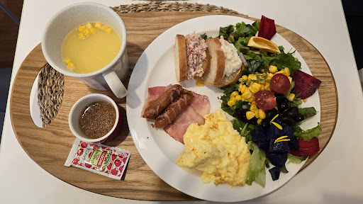We were fortunate that the cafe served breakfast pretty early as our schedule was tight. They had great sets of breakfast which was either Japanese or Western style. Both were great value! The lady boss was very helpful and friendly as well. Unfortunately we misunderstood her when she asked to drink our coffee before or after meal and we said before. We were served coffee first and they waited until we finished our drink before serving our set :).