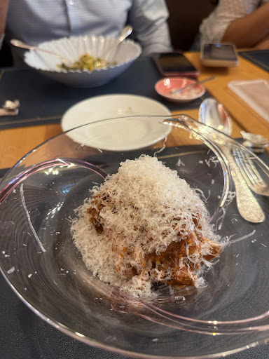 Relaxed Italian bistro offering fixed-price menus with dishes served on unique tableware.
