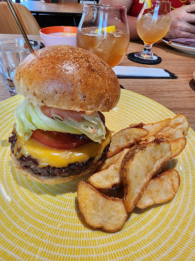 Unfortunately, the service was not. There is a system where you can pull a number and get your waiting time via a QR-code and so-called "live" updates. We had a beer around the corner and returned immediately when the app said that there was only one more group infront of us and a waiting time of 20 more minutes. We arrived 2 minutes after the alert and 20 minutes before the initial time given to us and waited outside of the restaurant. The server then came and seated another group, claiming we were not here when she came looking for us. So don't trust the system - it does not work! After insisting it was our fault, we received a table and had to wait for quite some time for our food. When we got our food the waitress already started very noisily cleaning up the room around us and dismantling the other tables. This was around 8p.m.. So all in all, the burgers were fine if pricey and the service was terrible....