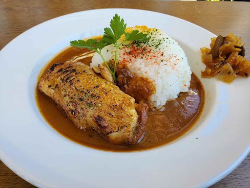 チキンカレーは大き目のチキンがどっしりとのった素敵なビジュアル。まったりとスタンダードなカレーとは明らかに違いスパイスがきいたこだわりのカレーといった感じ。とても丁寧に作られていることがわかります。チキンはスプーンで簡単にほぐれるくらい柔らかく、チキンの旨味もしっかり感じられます。