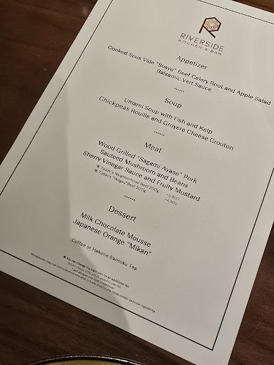 During our stay at the Hotel Indigo Hakone Gora, we had the pleasure of enjoying a 4-course dinner at Riverside Kitchen & Bar, which was included in our room rate. It turned out to be an unforgettable culinary experience!