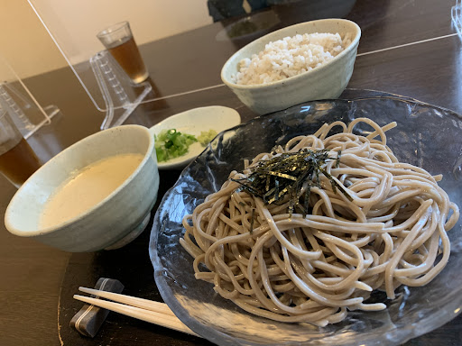 先ずは蕎麦から自然薯につけて頂きまーーす うーむ歯応えがしっかりとしており美味い! 自然薯の味わいもいい塩梅にで秀悦です 蕎麦は麺量もありますが硬めの食感なので中々の満腹感が得られます 蕎麦だけでは足りないかな?っと思って麦ごはんもオーダーしましたが、蕎麦だけでも充分だったかもしれません その麦ごはんも当然噛み応えもあるの腹パンでした 個人的にはもう少し軟めの炊き方が良かった 自然薯を掛けてかき込む形でズルズルサラサラとは硬めの為出来ませんでしたね