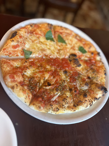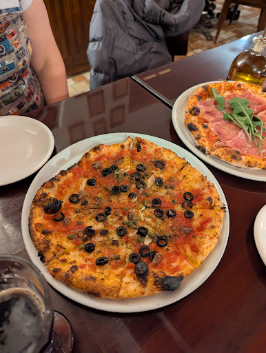 The hotel dropped us off, and they have a simple but tasty selection of pizzas cooked with fire in a pizza oven. the crust was great and there wasn't too much of anything.