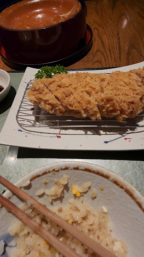 The food was absolutely amazing, and it was served quickly compared to the wait time. I ordered the famous tofu katsu in a pot with onion and spiced broth, which came with miso soup and some small sides. This was my first time trying this dish, and it was very unique and mind blowingly delicous and comforting. Loved the soft texture and hot broth and onions with the crunchy katsu on the outside. I also had to try the pork katsu as well before leaving this place, which, as I expected, was also very tasty, well cooked, soft and tender and delicious. Will definitely come back if I go back to Hakone, but I will not wait there for more...