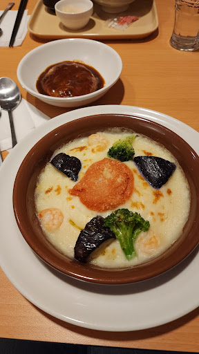 Western style family restaurant with lots of parking. It was one of the few places open after 9pm and was accepting customers. There was a slight line up due to high season but we waited no more than 15 mins for a group of 6 split between 2 tables. You order through a display on the table and robot waiters will deliver you food. The food was hot, tasty and cheap. No complaints there. I ordered the baked saffron rice with seafood in a cheesy sauce. It came out exactly like the display picture and tasted great. There was some some confusion when paying though, we didn't realise we had to take the docket with the QR code that came out with out food. This is required to make...