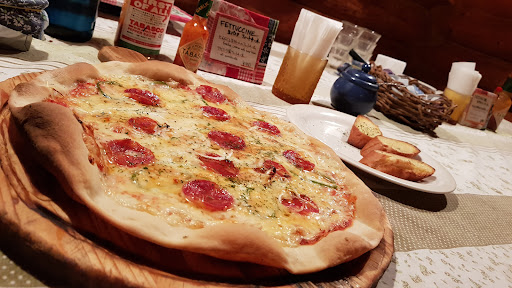 We came to Garlic after doing the day hike to the mountain lodge at Hakuba-Dake, so we showed up with an appetite. First thing you notice is the unusual decor and location, like something from the set of Twin Peaks. We got appetizers and salads, as well as very tall beers. Service was in no major rush, not a big deal but a little slow. After an appetizer and salad, we ordered a large pizza which was very tasty, but we were still hungry so we ordered another. The salads and app were pretty standard fare, nothing to write home about, and the pizzas were good but a little small. Overall the price comes out pretty high for what you get. Also, the glass of wine one of my friends ordered was pretty sour, I think it had been out a few days...it's a pretty interesting place - cool location, odd ambience, pretty decent food. I wanted to switch it up from eating Japanese for two full weeks and Garlic...