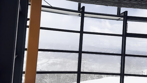 At the top of Happo One, a big food hall shines, With large windows offering stunning views and designs! 🌟❄️ Look out at the slopes where snowboarders glide, A perfect spot to relax and enjoy the ride! 🏂👀