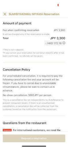 The restaurant did not say anything about the fine or ask us to call back the one left, but charge us with 5,000 yen unnoticeable three days later.