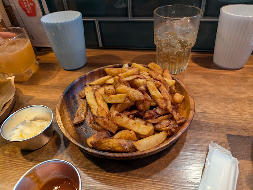 Tasty burgers and fries, however we had a very unwelcoming experience with one staff member. (To clarify the American/Canadian girl was lovely so not talking about her). We waited in a line as most people do to get into yummy places like this and we spent close to 20,000 yen here ordering 4 burgers, 2 fries and a bottle of wine to split. As soon as we’d finished our burgers this particular staff member swooped in to take away all our dishes and even our glasses of water and it really felt like they were trying to hurry us out even though we hadn’t even been there for an hour and one person was still eating. We hadn’t even finished our bottle of wine yet when she then came back and gave us our check, not even asking if we wanted anything else. She then rolls her eyes and walks back over to our table to take away our wine glasses when one of our members hadn’t even finished her wine. I understand they need to accommodate lots of people during busy times, but they also need to focus on the people who they are serving there and then. We wouldn’t have had an issue if they had communicated kindly to hurry up or that there was a 40min time cap but this was not the case, the very visable eye roll...