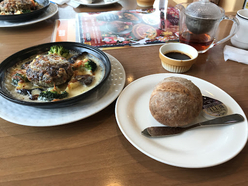 Read more日曜日のランチに行って来ました。 ちょうど羽咋に用事があって久しぶりにココスに寄りました。 混んでました。 待ってる人も何人もいました。 席は二人では申し訳ないほどの広いテーブルに案内されました。 包み焼きハンバーグ食べようと思っていたのに、『今限定のランチです。』と言われたらそっちを食べたくなってしまった😅 でも美味しかった♪ 野菜もあり、ハンバー...