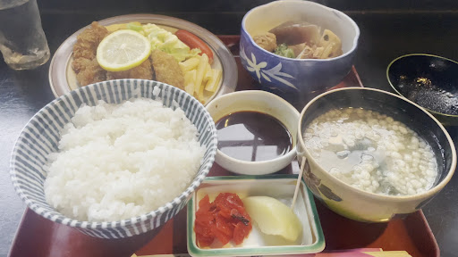 Read more羽咋市柴垣町、志賀町境に近い国道249号沿いにあるお食事処。 古民家をそのままお店にした感じで、素朴で味がある落ち着いた雰囲気。 いいねぇ、隅に薪ストーブがある 何か田舎のおばぁちゃん家に来た時の匂いもする。 何か昭和にタイムスリップしたような感じだ。 親子経営であろうか、ご主人は腰が低く親切な対応で動きまわり、おじぃちゃんは厨房内で働いていた。 日替わり定食を注文したが、安くでボリューミー。 この日の日替わりはアジフライ。 他店とは違い開いた状態で揚げておらず、衣もパリッと感でなくしっとりとして歯応えのあるものだった。 一夜干し?すり身? まぁ、これはこれで噛むたびにアジの風味が口に広がり美味しかった。 みそ汁に天かす、この辺じゃ珍しいねぇ。 小鉢もいろんな食材詰まっていて美味しい。 これだけ揃って1000円でお釣りがくる! このご時世に何とごはんの大盛り、おかわり無料! いやぁ、満足! 岩牡蠣のシ...