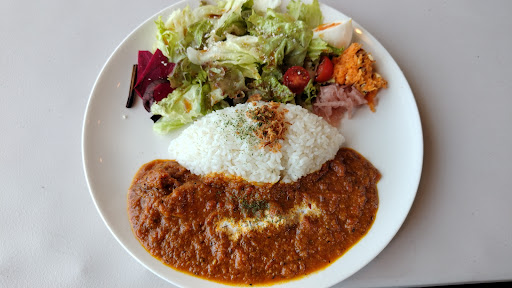大きな駐車場に先客は1台でした。ランチタイムの土曜日なのに営業しているのか不安でしたが営業中でした。接客は丁寧でありがたいです。すごく心清らかになる笑顔の接客でした。しかしメニューを渡されてすでに売り切れがありました。バターチキンカレーが売り切れ。かなりショックでしたね。 ずっと楽しみにしていた合掛けカレー(相崖カレー)は3種類から選ぶのですが、団長カレー、バターチキンカレー、グリーンカレーの2種です。そのバターチキンカレーが売り切れは辛い。グリーンカレーが嫌いなので結局、団長カレーを頂きました。カレーだけでは少ないと思ったので追加で崖バーガーも頼みました。