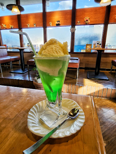 オムライスとオムカツは味噌汁かサラダが付いてくるそうで選択出来ました。 サラダを選びましたがキャベツにトマトにキュウリと茹でブロッコリーにドレッシングがかけられていておいしかったです。 川本スペシャルですが、オムカツという事でオムライスにカツが添えられたもので物凄くボリュームがありました。薄焼き卵の中にはしっかりとしたボリュームのケチャップライス(具材は玉ねぎ、ソーセージ、ピーマンなどをみじん切りしたもの)が入っていて家庭的な味わいです。とってもお腹がいっぱいになりました。 同行者の頼んだ日替わりの定食もなかなか美味しそうでした。 フロート類もあったのでメロンソーダをオーダーするとアイスがしっかり盛られたボリュームのあるものが出てきてこれだけでもかなり満足感があります!
