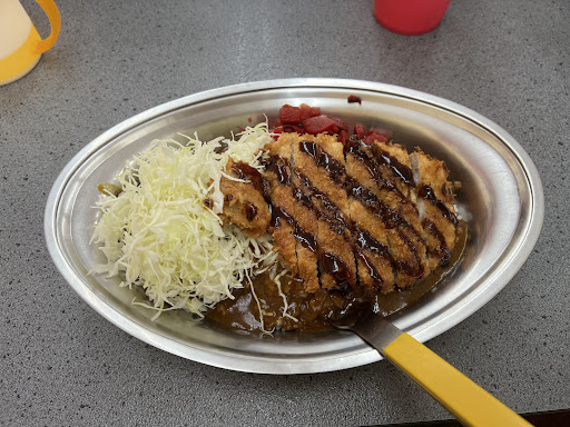Read more初めて食べに行きました!PM9:00頃でしたが、店内に誰もいませんでした!人気のLカツカレーを注文。860円。現金しか使えなさそうです。内装は、平成初期頃みたいで、メニュー表もレトロ?チック!カウンターに座り、男性店員がお水を持ってきてくれたのは良いが、その時に舌打ちされたのは、不愉快でした!しかし、カレーは美味しかった!キャベツとカレーって、組み合わせとしては、どうなの?と思いましたが、相性は良い。スプーンではなく、フォーク。コップも黄色。でも、石川県民のソウルフードを...