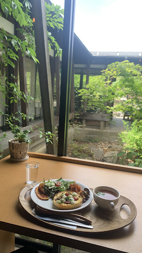 This was a lovely place to pick up some lunch in Tsurugi. The building is a beautiful traditional wooden structure with a high ceiling and many beams overhead. There is lots of seating inside and a terrace outside leading onto the garden in front. It was very peaceful and quiet since the restaurant is in quite an isolated location. The food was delicious. I had the mozzarella and tomato quiche because I am vegetarian and the man who served me was very helpful in accommodating for me. This came with a soup (may not be suitable for someone who is very strictly vegetarian because of the stock but it did not taste of meat/fish) and salad which were all delicious. If I am ever in the area again, I would happily come back. The man working there was very kind and did a great job at making me feel...