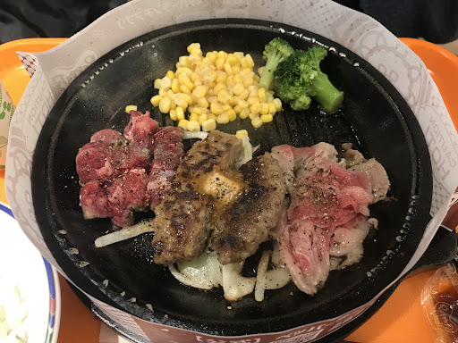 Read more久しぶりにペッパーランチのハンバーグを食べたくて注文。少しクドイけど肉感は好き。コンボの肉は少し硬い。セットの目玉焼きについては当方軽い卵アレルギーがあるためよく焼いてもらうよう伝えたが半熟で出てきた。新小松のイオンではちゃんと「よく焼きで〜」と厨房に伝えてくれておりちゃんと火の通ったものが...