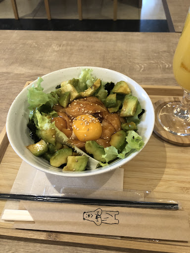 店内はおしゃれな感じです。 メニューもおしゃれ。 なんだけど量が少し少なく感じました。 味は美味しかったです。 写真はサーモンアボカドユッケ丼。 サーモンはとろサーモンぽい感じです。