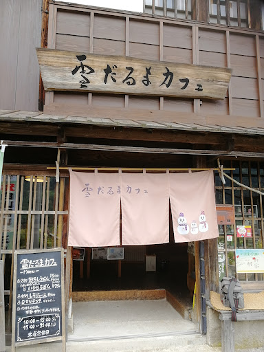 築140年(1880年くらいに完成)、家系で代々守ってきた立派な古民家を店として改装して雪だるまカフェとしてオープンしたのが2004年くらいのこと。細麺のうどんと地元独特のスウィーツ、ソフトドリンクにアルコールもあります。