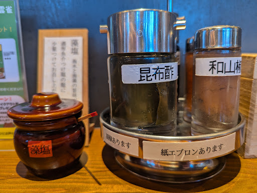 Read more2024/03追加 淡麗中華そば+究極のTKGセットを注文。 一口すすると、節、魚介が主張した醬油ラーメンで好みの味だが、甘味も強くて結構味が濃い。淡麗はどこに行った?という感じ。美味しいけど、食べ終わる頃には甘さがくどくなった。味変で昆布酢を入れたが、ドボドボと入ってしまい、不味くなってしまった。注ぐ時は数滴に留める様に要注意。チャーシューは2枚だが、かなり薄切りで食べ応えは無いかな。厚ければ良いものでも無いけれども、スープの濃い味が染みてしまいチャーシュー自体の味はよくわからなかった。 TKGの卵は、オレンジ色の綺麗な黄身で、薄味の出汁醬油と混ぜると、硬めに炊かれてはいるが、美味しいお米と合わせて美味しいかった。