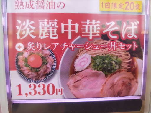 淡麗中華そば+炙りチャーシュー丼(限定20食)が残っていたので、頂きました