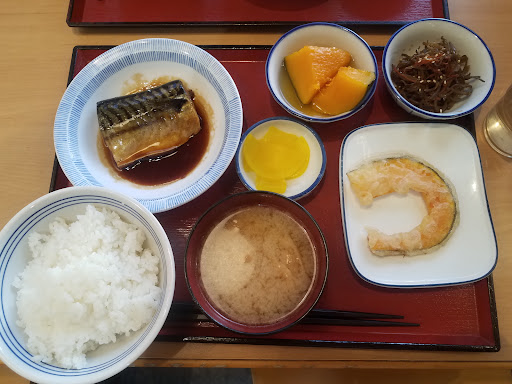 A sort of buffet style set meal shop with a wide variety of mostly healthy Japanese dishes. Choose dish by dish down the line until you choose your rice size and soup at the register. Fish cooked by request. Delicious and nutritious....