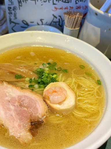 しばらく待っていると、ラーメンが運ばれてきました。 スープを一口、塩味なのに、ややとろみがあり、あっさりしています。麺は中太麺を選びました。コシがあって、歯応えがありました。 トッピングは、チャーシュー、青ネギ、メンマ、味玉が入っていました。