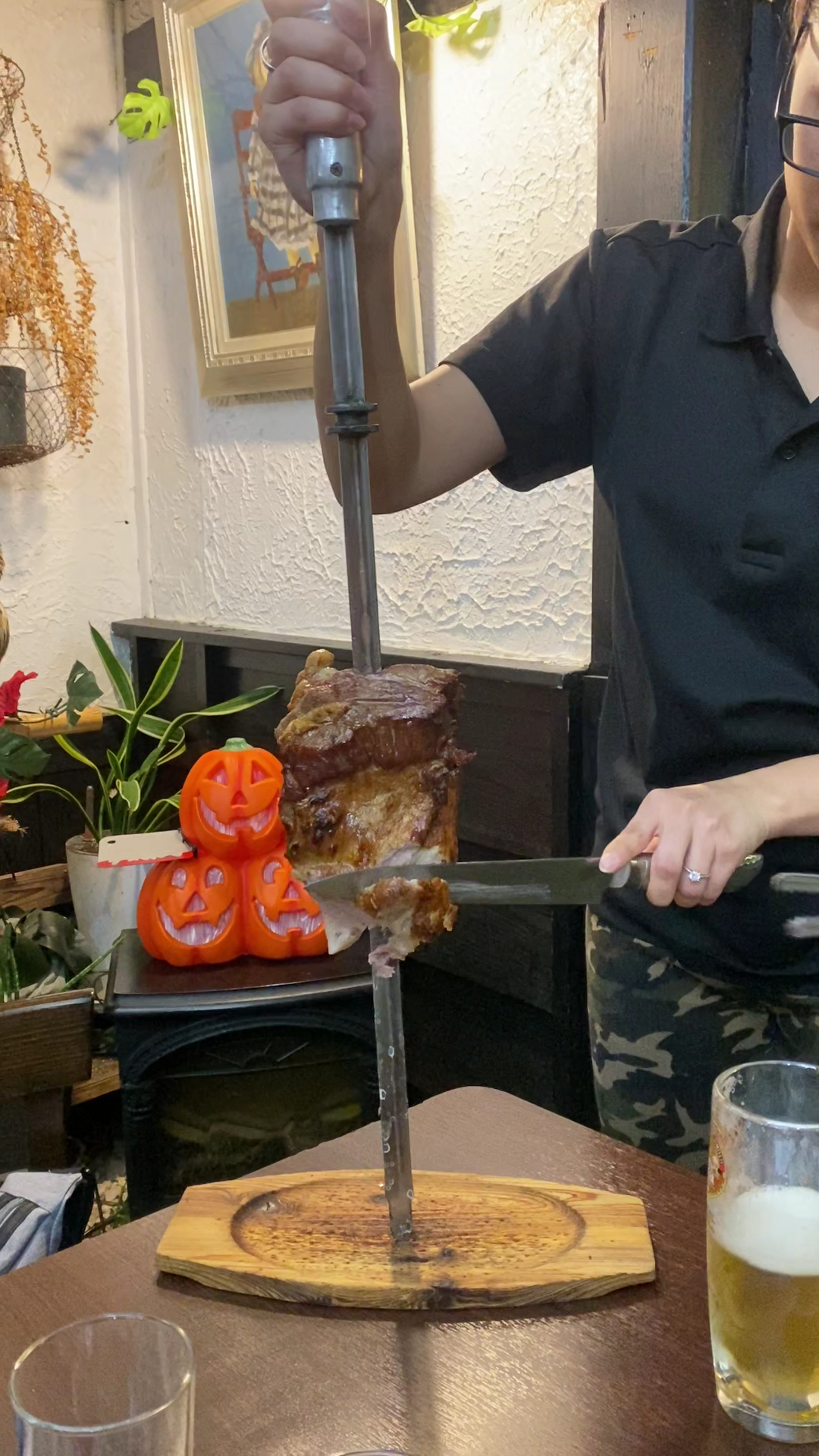 ・シェラスコの食べ放題に関して 胃袋に自信のある方以外は安いコース(イチボ提供2回)で十分かなと感じました。 イチボは一度の提供で最大6切れいただけるはずなので、それを2回も提供されれば普通の方は大体満足できるかと思います。 提供間隔は数種類立て続けに来たら暫く来ない、を繰り返す印象でした。 私はそれで手一杯でしたが、物足りない方はお願いすればすぐ来てくれると思います。 客数が減っても何かしら常に焼いてるように見えました。