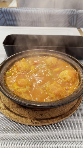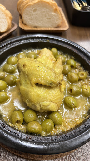 タジン鍋はトマトベースの海鮮を選びました。付け合わせのパンとよく合うこと!辛味調味料のハリッサが別で運ばれて、自身で辛さを調整できました。が、正直私にとってはハリッサは辛くないに等しいもので、鍋に入れずにおかずの一つとして食べてしまいました。 クスクスは何の肉を炊き込むかを選べます。今回は鶏肉を選びました。優しいお味でどんどん食べれます。 ミントティーは、店主が高いところから注いでくれるパフォーマンス付きでした。量は多くありません。ティーカップいっぱいで、少量を口直しに嗜むお茶だと思います。これも料理との相性がよくて、口の中がすっきりして、目を見開いて美味しい!と言ってしまいました。チョコミントが好きなら飲めます!ちなみに砂糖は入っていませんので、純粋なミントティーです。私は砂糖を入れない派なので確認しませんでしたが、言...