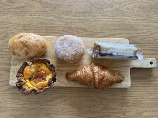 ・塩パン ・もちプレ (砂糖をまぶしてあるもちもちした揚げドーナツ) ・ホイップ&つぶあん (生クリームとあんこの食パンサンド) ・キッシュ(ベーコンとアスパラ) ・クロワッサン を購入。