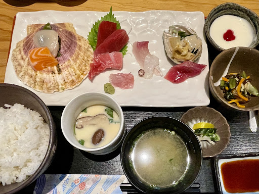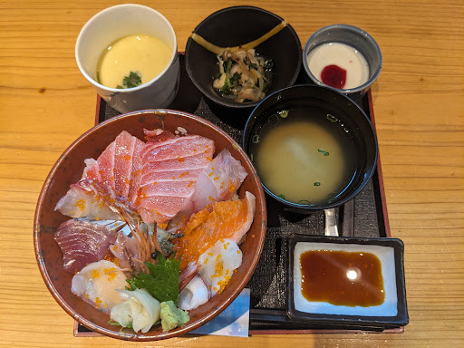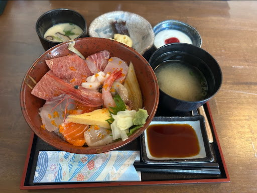 Read more2024/10 平日ランチで訪問。駐車場は店前に8台ほどかな?お店の規模に比べると少ない様子。 入り口暖簾の奥にあるドアの開け方は少し戸惑う。引戸です。 店内入ると、店内の見通しが悪く、右手に座敷、奥にカウンターと厨房。左手にも座敷があるが電気が消えている。少し変わった造りの店内。 メニューは、ランチメニューと本日のオススメ、ディナーメニューがあり、ディナーメニューにある和楽刺身御膳も対応してくれるとの事なので、刺身御膳と本日オススメのサンマの塩焼きを単品で注文。 大将含めて店員さんの対応が良かった。 刺身の他、小鉢や味噌汁、茶碗蒸し、デザート付き。 刺身の品数が多くて品質も期待ができたけど、一切れが小さくて、貝以外は味わう前に無くなるので物足りないかな。ご飯の量が男性には少ない上に硬い。炊き上がりにもムラがあり、とても硬いところと少し硬いところがあった点が残念。 サンマの塩焼きの焼き加減は見た目完璧。ただ、今年はまだ脂の乗りがイマイチな様で内臓の旨味も少なかった。 あと、お店の責任では無いが、隣に常連らしい高齢男性(上品な服装では無い)が座り、高圧的に店員に食事に関係が無い注文を何度もし、食事もせわしなくマナーが悪く、什器をドンドンと音がするよう置き、食事後は爪楊枝でシーハーで興醒めした。 それでも、ランチの海鮮丼なども機...