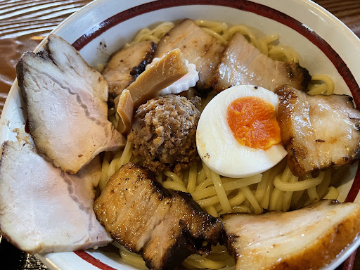 つけ麺は大盛は確かに多い。けど食べれない量では無かったかな。良かった!! 甘辛なスープでスパイスが効いているので大人な味で美味しい。 麺は太いというよりは平打ち麺?的な感じなのでスープが絡みやすく食べやすい。 具材の真ん中にある肉味噌を入れると少し味変できて飽きがこないのでどんどん食べれます。 チャーシューも柔らかすぎずしっかり味もついていて美味しい。ボリューム満点です。 美味しかったです!また来たい味でした。