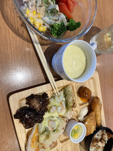 料理を取る際、お客さんが多く渋滞していて取りにくかったです。蓋もされていないので誰かの唾液や埃、ゴミがついていないか気になりました。 炒飯や白米は時間が経ち硬いのにべちゃべちゃ…。ラーメンスープ、パスタは味がしなくて美味しくない。 豚汁はランチから交換していないのでしょう。煮詰まっていてしょっぱかったです。 他は全体的に全て冷たく味がしない、補充は大体されていなくて残飯みたい、美味しいものがない。 ブリュレは出来立てを食べれましたが何故か水っぽくて美味しくなかったです! チョコバナナのピザ、春巻きはかろうじて食べれたかな…?
