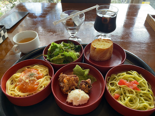 Read more健康診断が終わり朝ごはん抜きだから、近場のランチを検索!評価もいいこの店にきてみた。 日替わりランチを注文。二種類のパスタにサラダ、スープ、おかず、パンかご飯がついて980円!コスパはいい😆 パンを選択しました。12時すぎに来店した時は3組のお客様がいましたが、すぐに満席に🈵 ランチは食べ応えありそう! 男性は少しすくないかも。 本日のパスタは、トマトソースとジェノベーゼ! ジェノベーゼ好きだから、ドンピシャ! 最初に唐揚げをたべたけど、見た目も揚げすぎてこげてるがやはり苦味が😀 パスタも麺がやわらかいし、、パスタ専門店にしてはこだわりが感じられなくて残念。トマトソースの味は、給食のソフト麺をおもいだした🤣 全体的に懐かしい味、おうちの味ですね。 お金出して食べるなら、他の方がいいかな、と思いました。お腹すいていたからおなかいっぱいになれたのでとりあえず良かったかな。 リピは無いかな。 レジの奥が見えるけど、乱雑にいろんなものが置いてあり、ふるいのような調理器具やら事務用品、汚い軍手……ごちゃごちゃしてるのが丸見え。 これは、なんだか、不衛生な店?とおもえてきてしまうので、綺...
