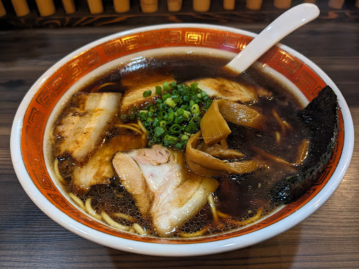 支那そば(忍者系ラーメン)は、少し前まで、富山ブラックと対比して、浜松ブラックとも呼ばれていたらしく、たまり醤油を使った黒いスープの見た目に反して、油や塩気が控え目で、スッキリした味わいの中に、醤油の香ばしい風味を感じられ、ネギ、メンマ、海苔、そして、チャーシューが5枚も入っており、しっかりと弾力のあるストレートの細麺を啜るとスープが絡んで、最後まで、支那そばを堪能できました。