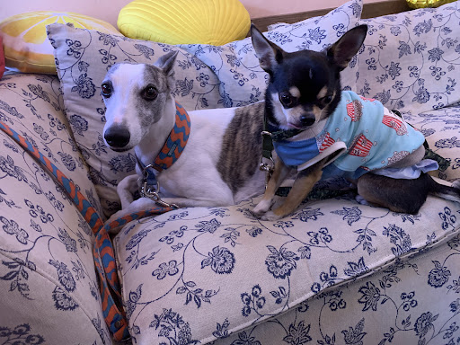 待ち時間にふと気づくと、隅っこに看板犬のカネル君がいました おとなしすぎて、ぬいぐるみかと思いました❗