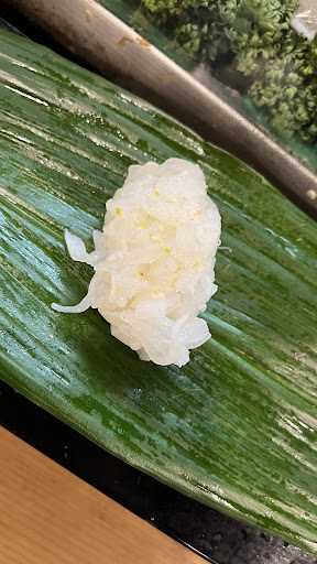 そんなちょっと緊張した状況でしたが、 1貫ずつ出していただくお寿司はどれも美味しく、 「次は何が出てくるのか」というワクワク感も味わえました。 お寿司はもちろんですが、 ワサビをたっぷり塗って食べる玉子焼きにはビックリ! 醤油を気持ち多めにかけ、玉子にワサビをなじませて食べたのですが、 ワサビの辛さより甘さといいますか、 爽やかさを感じることができました。 お寿司に関しましても、 「炙って塩がふられているからそのままで食べてほしい」と各ネタにこだわりを感じることができ、 より一層美味しくいただけました。