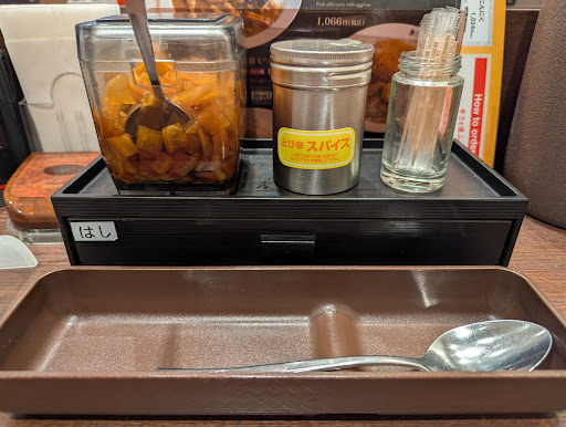 Read more2025年2月 タブレット導入後初来店。こちらの責任じゃないが、種類が多いのでカレー1つ頼むのに20ページぐらいの中から選ぶ訳でこれがなかなかマゴマゴしちゃうのよ・・・と。(私は食べる物が決まってるのでここで時間使いたくない)こういうフォーマットだと店側の都合順に並ぶので値の張るトッピングが乗るカレーが先頭からズラリと・・・。こういうところが近年アンチに叩かれている一因だと思う。"不親切なのに単価至上主義的な"と思われるのだろうね。現場はそういうとこ見せず頑張ってるのにね。