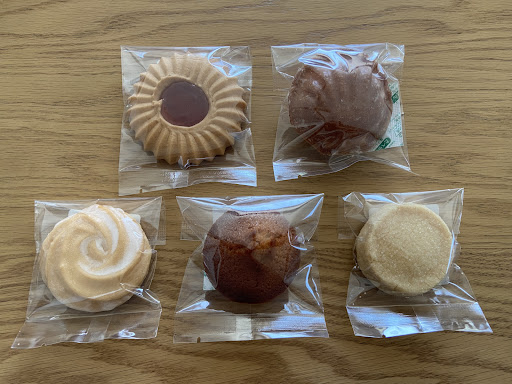 焼き菓子は10種類ほど並んでおり、フィナンシェやマドレーヌ、クッキーなど6点を購入しました。 フィナンシェ、マドレーヌはやや小ぶりですが、高くても¥200ほどで、とても買いやすい価格です。