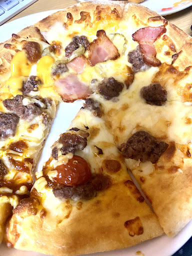 Read more普通にどこにでもあるドミノピザです。それ以外の何ものでも有りません。 ただ、入店するとBGMが大音量で会話も出来ない状態に先ずびっくり! 店内を見回しても無人かと思える状態でしばらく待ってやっとスタッフが無言で現れた。 注文している間もスタッフは無言のままだし、調理用の青いゴム手袋をはめたままレジやお金を扱う姿にまたびっくり! 持ち帰り予約で先払いしてもレシートすら無くまたびっくり! 予約時間に受け取りに行ってもレシートは無いし、持ち帰って追加のトッピングを忘れられ、真っ黒に焦げたピザを見てまたびっくり! レシートも無いから間違いのクレームも入れれない状態に唖然…。 他にもピザ屋が何軒も有る地域なのに...