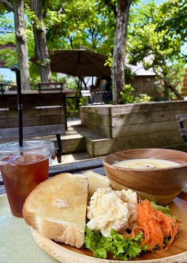 Read more初めて来店しました。たこまんのパン屋さん。ランチプレートとアイスソイラテを頼みました。ランチプレートを頼めば飲み物100円OFF。ランチプレートのパンは3種類から選べます。私はトーストを頼みました。トーストは何もついていないので無塩バターに砂糖か塩を選べます。➕30円だったかな?チキンは塩麹とカレータンドリーチキンを選べます。私は塩麹。あとはサラダにキッシュが付いてます。キッシュはとても美味しかったです。薩摩芋のサラダも甘くて美味しかったです。ランチプレートの他にはスーププレートや、売っているパンを選んで食べることも出来ます。店員さんは皆親切で接客はとても良いです。帰りにパンを購入しました。胡桃チーズパン、アンパン、クロワッサンはクリームを入れてもらって。持ち帰って時間が経ってから食べたのでクロワッサンはパリパリ感がなくなってしまったかな。その場で食べれば良かったかなと思いました。クロワッサンが300円でクリームを入れると➕70円。パンは全体的に少しお高めかなと感じました。でも全体的に美味しかったです。外にテラス席があり、ブランコがあるので春や秋なら子供連れは良いと思います。絵本もあるし座敷もありました。今度はパンを選んでラ...