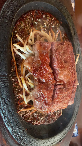 Meant for local people who don't eat steak often. Here, "skirt stake" is served, which is moderately tasteful, juicy with appropriate amount of fat. Although the price suffers from the current economical situation in Japan it's not reasonable, and therefore it's quite expensive for the value. Also, be prepared to have ¨Misoshiru¨ with steak plate, which I don't appreciate. It's a local custom in Shizuoka area to have misoshiru soup with any food you eat, especially in Hamamatsu and...