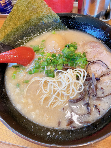 麺はストレートの硬め依頼。 博多系豚骨スープですが、刻み玉ねぎが甘さとコクを出している感じで美味しい。 スープ飲むとシャキシャキ感が凄くする、玉ねぎ大成功ですよね。 後に刻み紅生姜をINするのですが、この刻みって事がすごく麺に絡んで良いです。