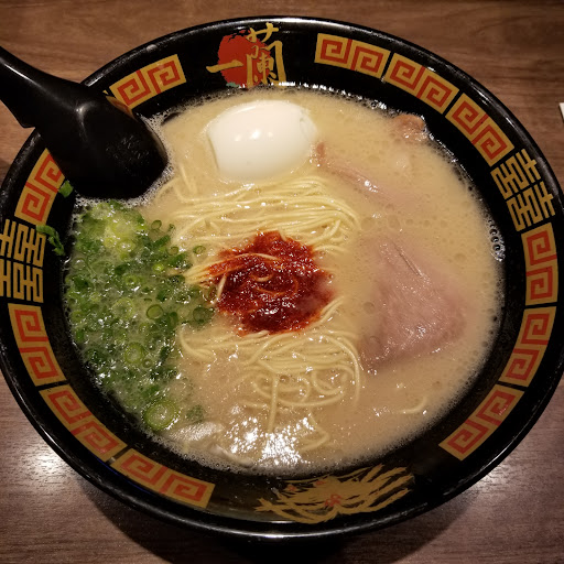 Read more言わずと知れたとんこつラーメンの大人気店☆ メニューもとんこつオンリー! 食券での購入になります。 値段は900円くらいするので、そこそこ高めだと思います。。。 個人的には大好きなとんこつラーメンの味なので、900円の価値はあると思ってよく利用しています! 男性は一杯だけだと物足りないと思いますが、大盛りが無いので、席にて替え玉を注文することをオススメします! 半玉と一玉が選べるので、少し物足りないと感じる女性でも気軽に替え玉を楽しめると思います☆ 私はいつも卵をトッピングしていますが、 これは絶対に追加オーダーした方がイイと強くオススメします!!! 自分好みのオンリーワン・ラーメンになるように、席にあるオーダーシートで麺の固さやにんにく、脂、秘伝のタレ等の増量or減量が選べます! 本場のとんこつラーメンを希望するなら、全部の項目で一番右端に丸を付けたらいいでしょう☆ ※秘伝のタレは少しでも結構辛いので注意が必要ですよ!! 辛いのが得意な方は2倍~でいいでと思いますが、苦手な方はゼロでも十分美味しいとんこつラーメンを食せると思います!! パーテーションで一人一人のスペースが確保されていて、女性が一人で入っても回りの目を気にする事なく食事に集中出来ますね☆ 24時間通しで営業してくれているので、 朝昼晩の食事以外に小腹が減ったら、すぐ利用できるのも一...
