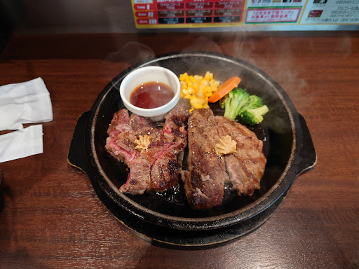 Read more湖東店では、とても親切丁寧な対応して下さいました。ランチ時人気のようで少し人の波が引いた頃来店したので対応出来たのだと思いますが、ランチの部位肉は硬いと思い通常注文しました。持病で歯が弱いため柔らかい部位はヒレだけど何年も前に出店ラッシュしてた頃、他店(撤退してます)でヒレを頼んでゴツゴツのカチカチ焦げ焦げで食べられずトラウマで今回家族の希望で2度目の利用でしたが女性シェフの方が優しく丁寧に対応して下さり「鉄板加熱を弱めで焼きすぎなければ柔らかく美味しくお作り出来ます」との事ドキドキしながら実食したら、ん!凄い!柔らかい!美味しくて最高!でした厨房が忙しくなければお肉食べたあと米を鉄板に薄く広げ甘ダレを好みの量回しかけコーン追加で鉄板再加熱してもらい黒胡椒を振り食べるとペッバーランチ!元々ペッパーランチ系列店みたいですね。食後お礼を伝えると素敵な笑顔で私もヒレステーキこの調理方法でよく食べてます!と言われておりました。お店のイメージが激変しました!いきなりステーキ恐怖症克服^^大好きな...