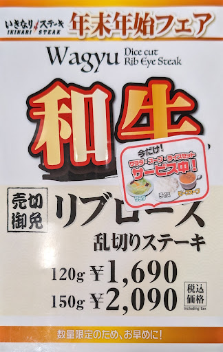 年末年始フェアで、数量限定の和牛リブロース乱切りステーキのサラダ・スープ・ライスのセット(今だけ無料)を食べに行ったら、注文、調理、配膳、会計まで、シェフが、まるっと1人で回していて、ビックリしました。